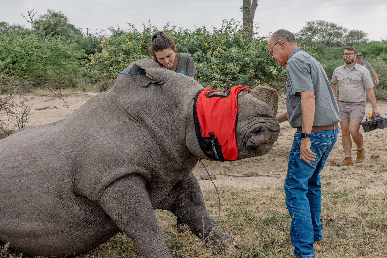 Bei der Ankunft bestätigte sich die Situation: Das Nashorn hatte eine mehrere Meter lange Schlinge um den Kopf, die sich beim Laufen verhedderte. Erst einen Tag zuvor wurde das Tier ohne Schlinge gesichtet. Es war offensichtlich, dass das Nashorn sich nicht selbst aus der Schlinge befreien konnte. Sofort wurde ein Rettungsteam zusammengestellt.
