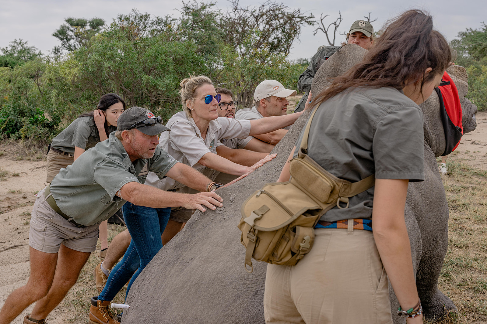 Aufgrund der Dunkelheit konnte die Rettungsaktion erst am folgenden Tag durchgeführt werden. Rhino Revolution begleitete das Nashorn so lange wie möglich, um die Suche zu erleichtern.