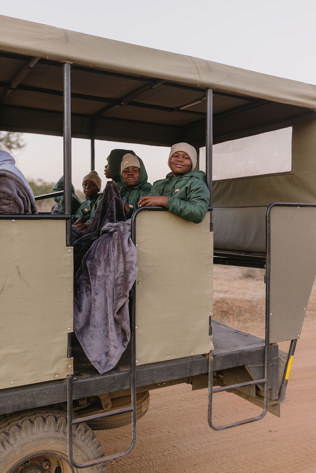 Oftmals kennen wir die Hintergründe jedes Kindes nicht. Und trotz schwieriger familiärer Situationen, Armut und dem Ausschluss von ihrem natürlichen Erbe – den Wildtieren – erleben wir in den Community Camps immer wieder das Gleiche: Die Kinder sind voller Dankbarkeit, Freude, Aufregung und Interesse, mehr zu erfahren. Obwohl viele Kinder kaum bis gar kein Englisch sprechen, geben sie sich größte Mühe, die schweren Vokabeln in der kurzen Zeit des Unterrichts im Camp zu lernen. Denn einmal zu Hause angekommen, teilen unsere Artenschützer von morgen all das Erlebte auf den Safaris und im Camp mit ihren Geschwistern, Eltern, Großeltern, Tanten und Onkeln sowie den anderen Kindern in der Schule. Sie sind unsere Botschafter der Hoffnung, dass die oftmals vergessenen ländlichen Gemeinden entlang des Kruger Nationalparks wichtig sind und dass sie gesehen werden.