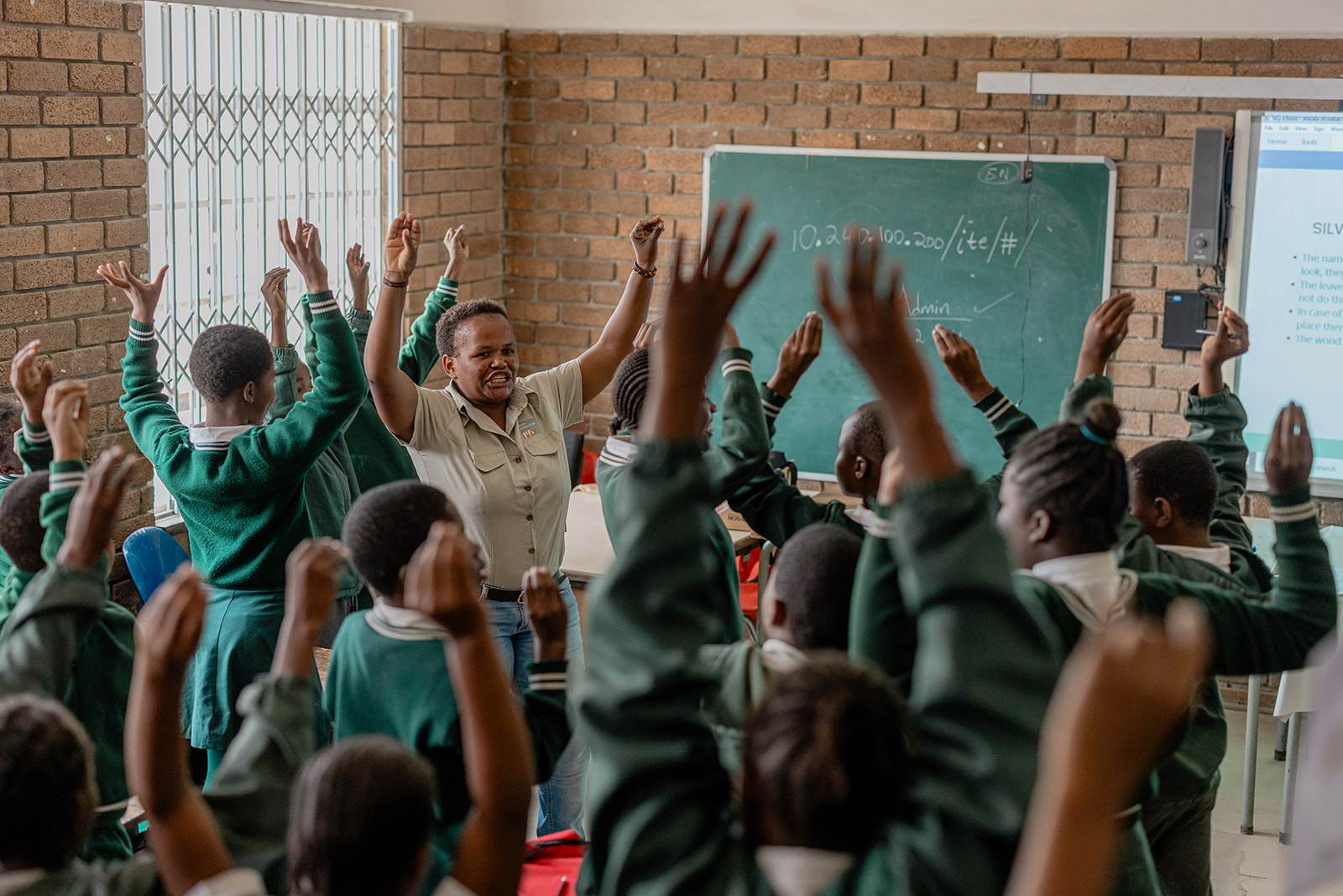 Auch im Jahr 2024 setzen wir unseren Sachkundeunterricht mit großer Leidenschaft und Engagement fort. Karabo und Admire, unsere engagierten Mitarbeiterinnen von Rhino Revolution Südafrika, stehen erneut im Mittelpunkt der Umsetzung.