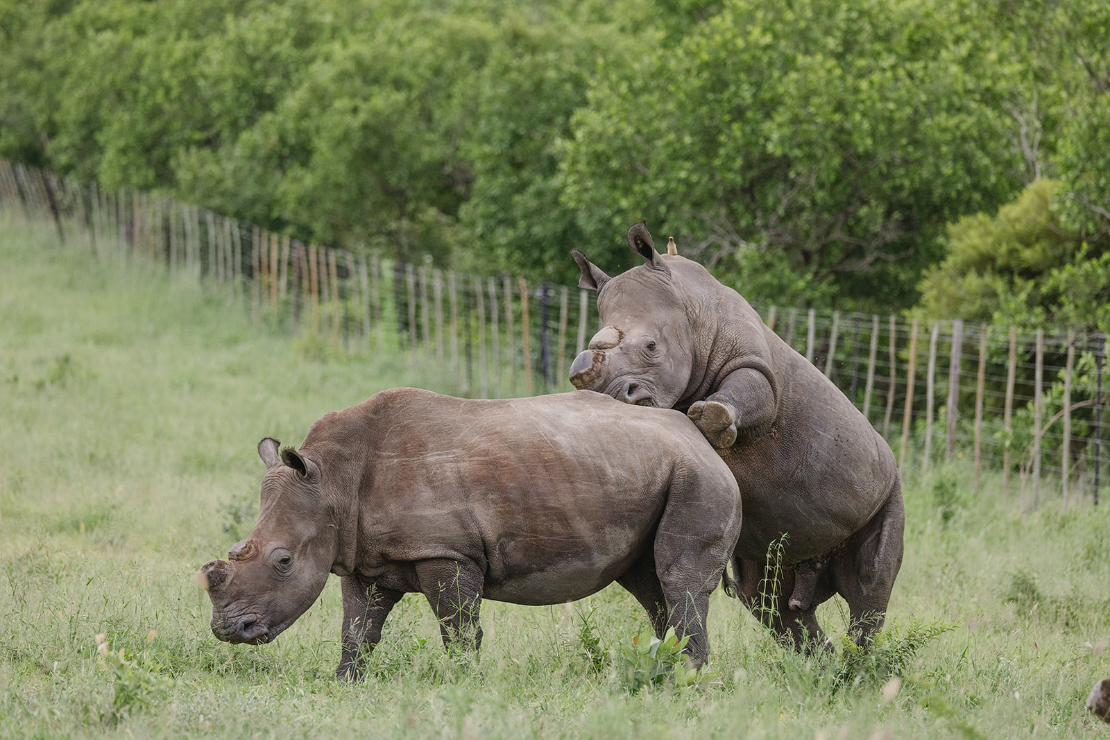Am 09. Januar jedoch konnten wir die drei Nashörner auf einer Landebahn entdecken, die mittlerweile von frischem grünen Gras überwuchert war. Lula, die jüngere der beiden Nashörner, zeigte Interesse an Ubuntu. Für sie und auch für Ubuntu war es das erste Mal, dass sie sich fortpflanzten. Nach mehreren Annäherungsversuchen gelang es Ubuntu, mit seinen über zwei Tonnen Gewicht die Balance zu finden und sich erfolgreich mit der 7 Jahre alten Lula fortzupflanzen. Ein absoluter Erfolg für unser Zuchtprojekt!