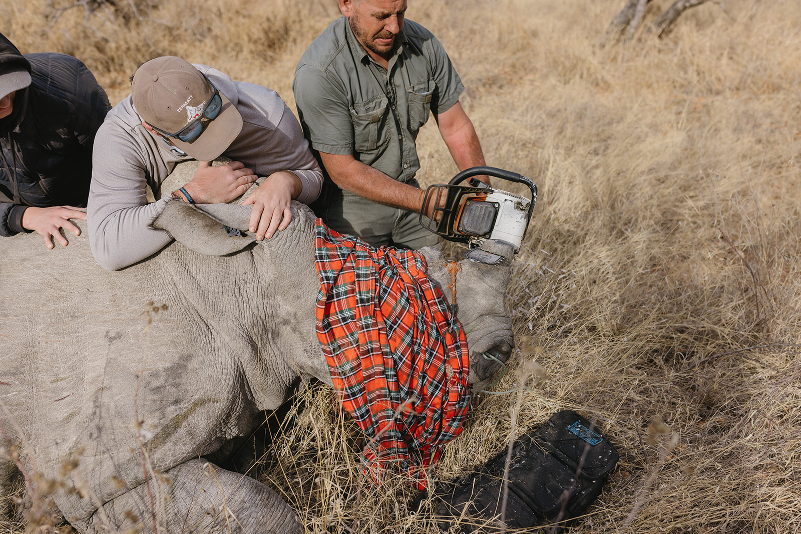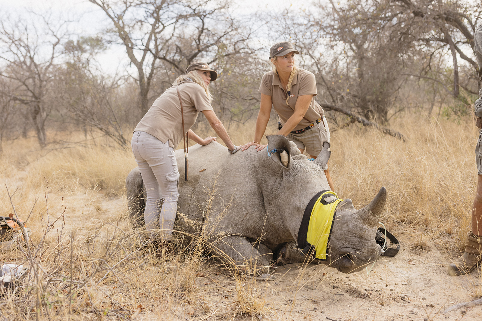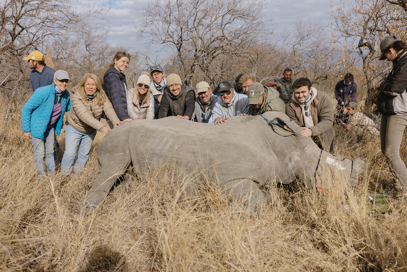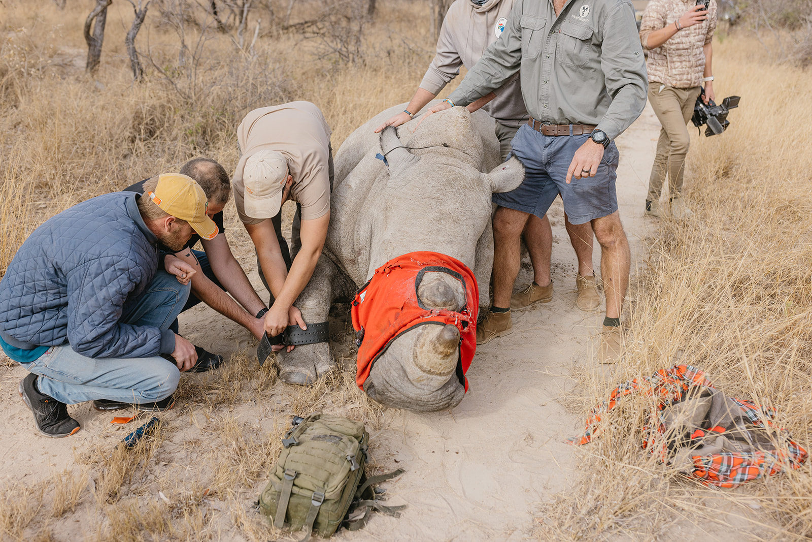 Zeitgleich mit dem Anbringen der Tracking Devices wurde bei sieben Breitmaulnashörnern ein Horntrimming durchgeführt. Diese Maßnahme verlief reibungslos und ohne Komplikationen. Alle beteiligten Tiere sind wohlauf. Das Horntrimming ist eine wichtige präventive Maßnahme, die dazu beiträgt, die Tiere vor Wilderei zu schützen.