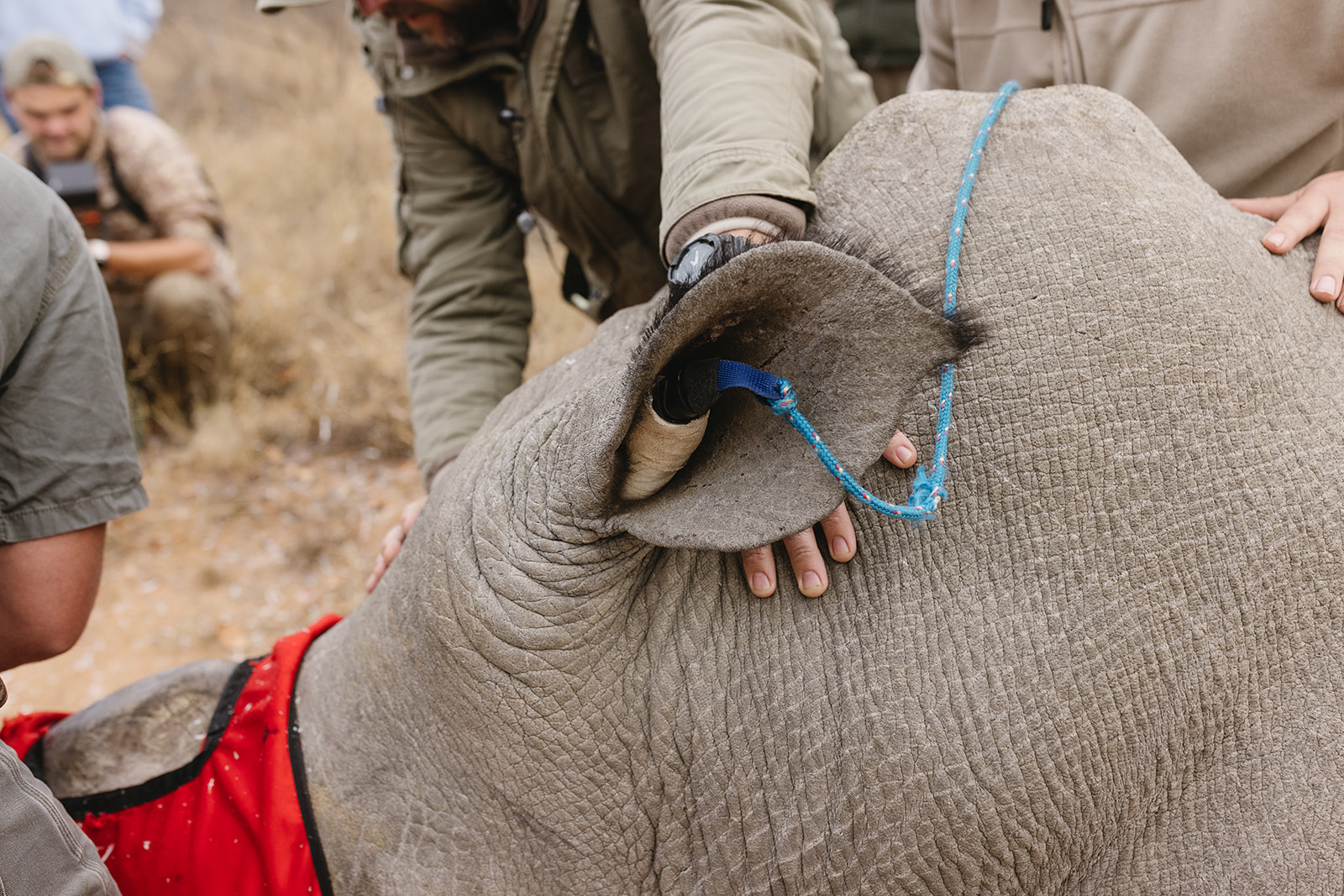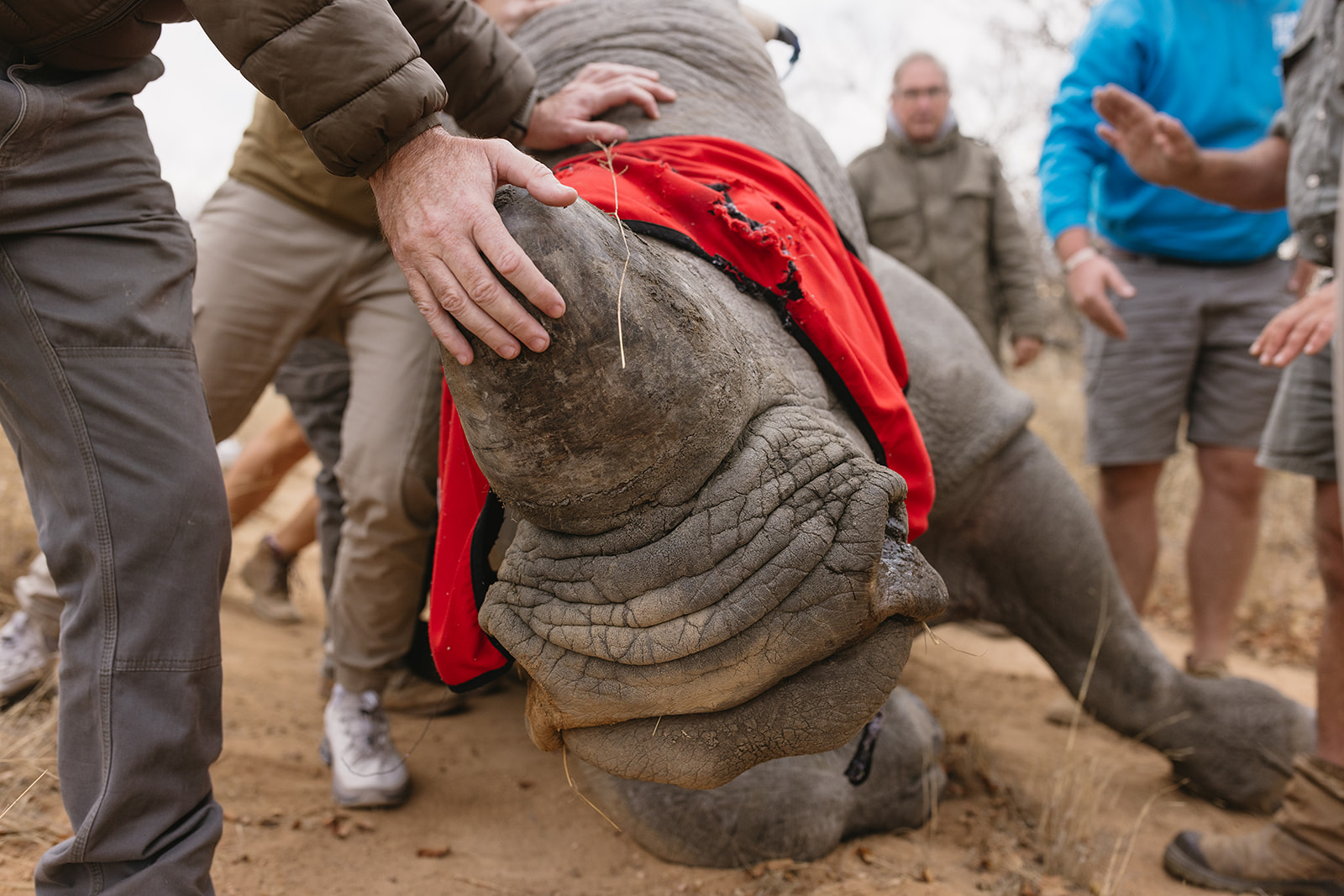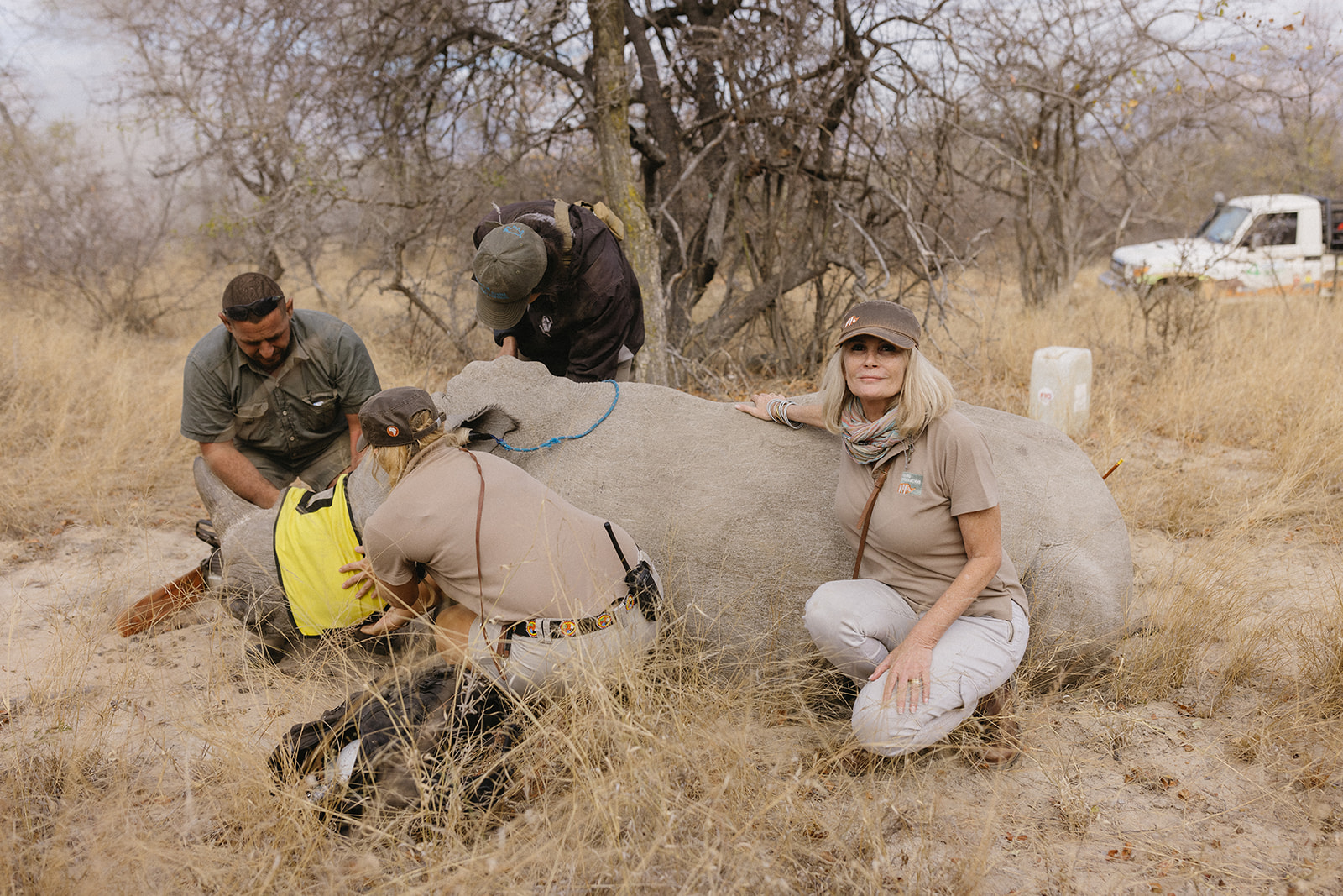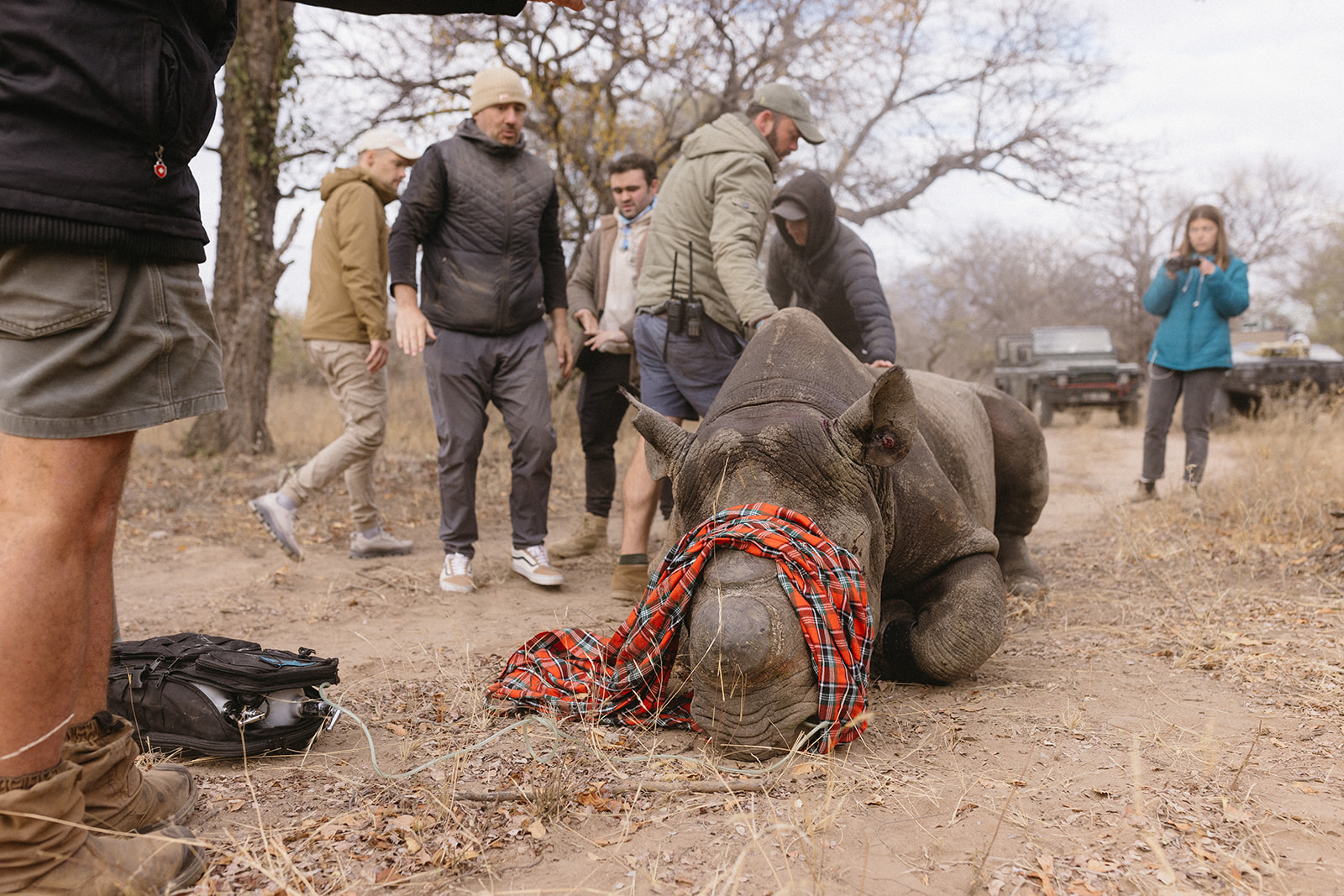 Zeitgleich mit dem Anbringen der Tracking Devices wurde bei sieben Breitmaulnashörnern ein Horntrimming durchgeführt. Diese Maßnahme verlief reibungslos und ohne Komplikationen. Alle beteiligten Tiere sind wohlauf. Das Horntrimming ist eine wichtige präventive Maßnahme, die dazu beiträgt, die Tiere vor Wilderei zu schützen.