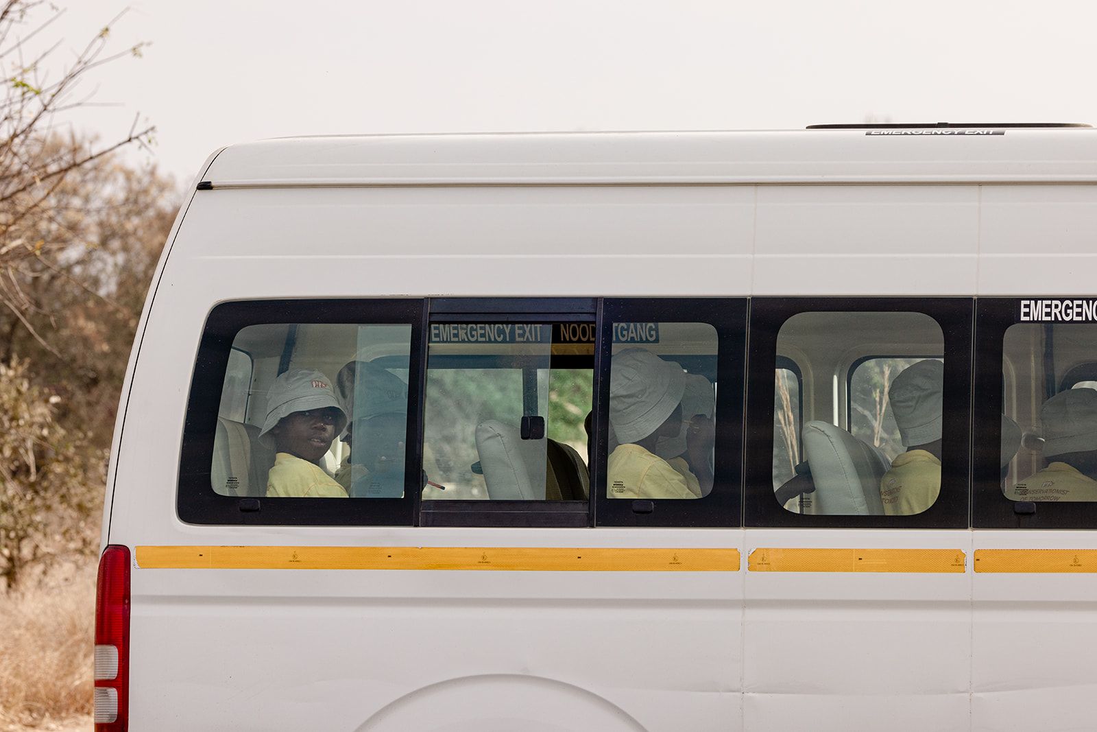 Unser speziell ausgestatteter Rhino Revolution Bus und unser Safari Auto bildet den Ausgangspunkt für dieses aufregende Abenteuer. Hier finden bis zu 8 Kinder Platz, sowie eine Lehrkraft als Aufsichtsperson und unsere erfahrenen Mitarbeiter/innen von Rhino Revolution, die den Unterricht durch führen.