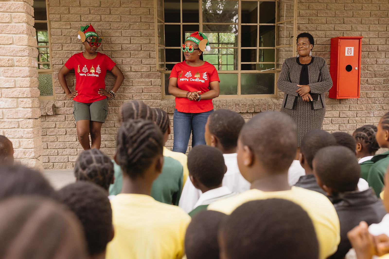 Am Wochenende zuvor hatte jedoch ein heftiger Orkan die ländlichen Gemeinden entlang des Kruger Nationalparks getroffen. Zahlreiche Familien verloren das Dach über dem Kopf, und die Strom- und Wasserversorgung brach zusammen. Die Schule musste vorübergehend schließen, während die Menschen in den Gemeinden die Schäden beseitigten und sich gegenseitig unterstützten. Umso wichtiger war es, dass wir uns an diesem Tag mit der Schulleitung und allen Schülern versammelten, um gemeinsam zu singen und zu beten. Ein Moment des Zusammenhalts, der für die Kinder nach den schwierigen Tagen ein wenig Hoffnung und Freude zurückbrachte.