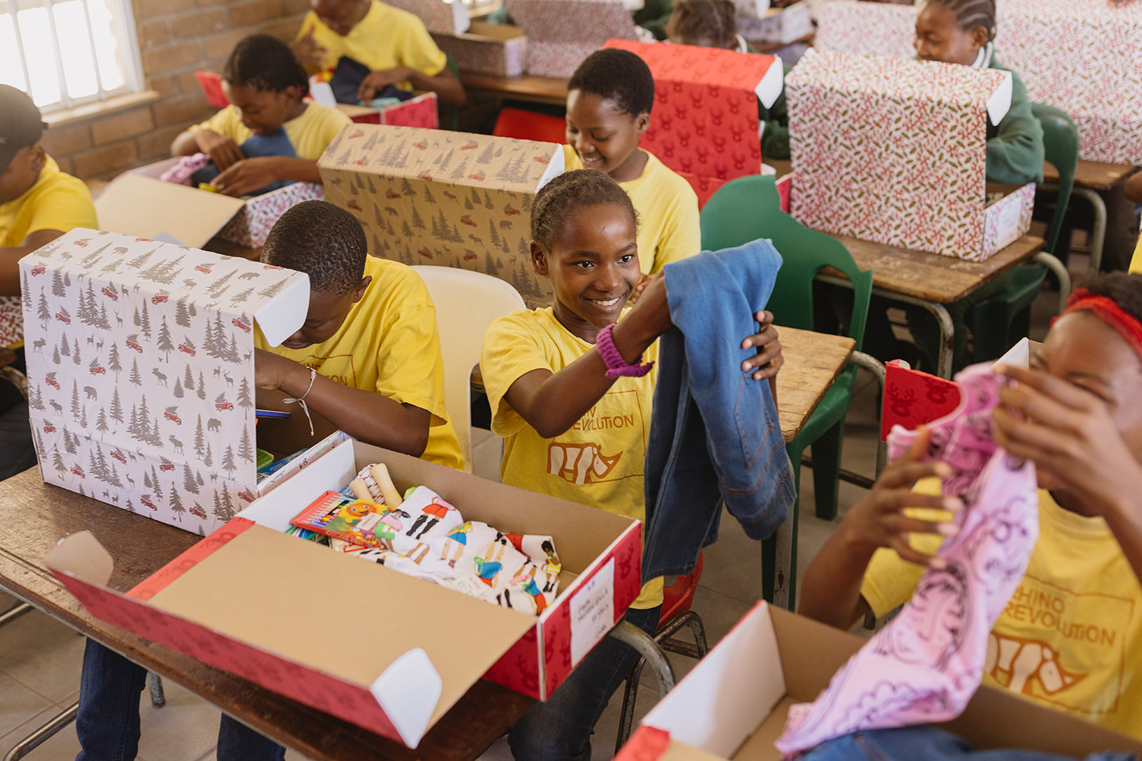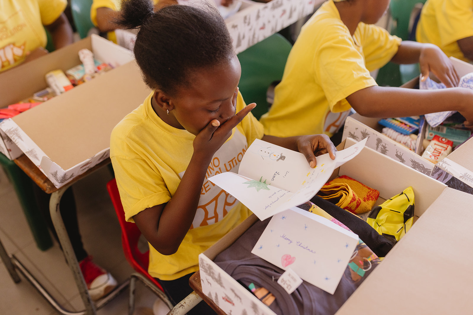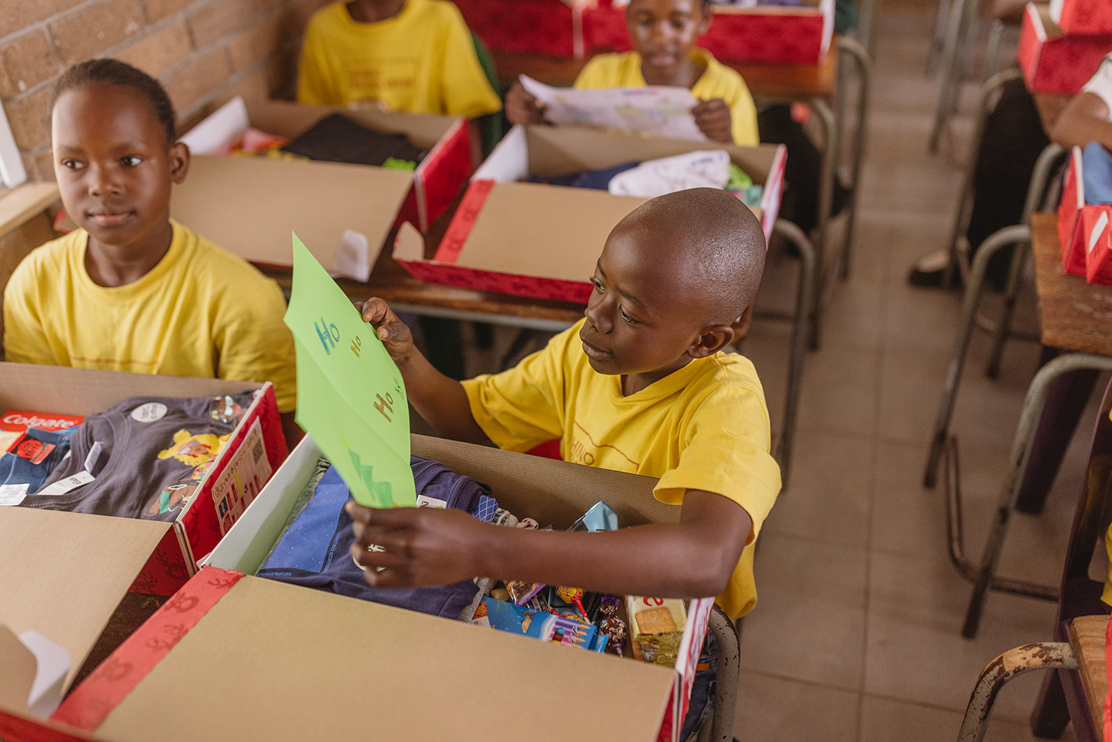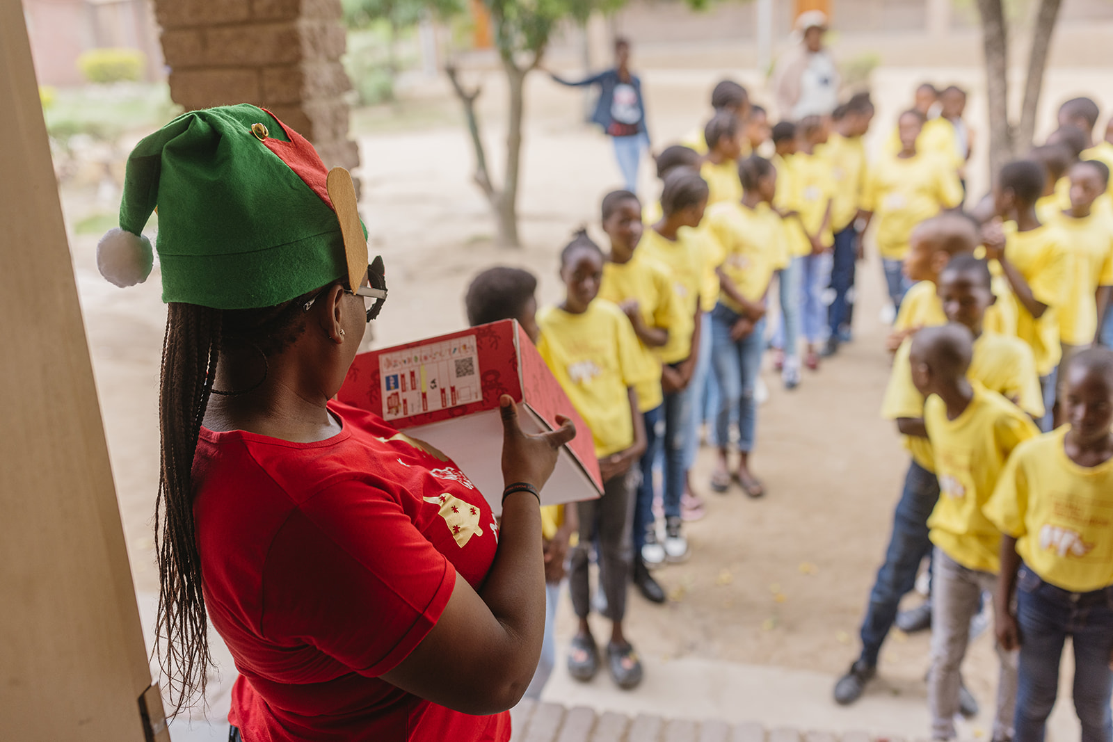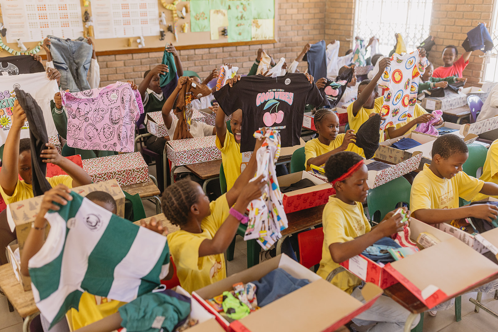 Die Übergabe der Santa Shoeboxes wurde sorgfältig vorbereitet. Bereits im Morgengrauen packten wir alle Geschenke in den Anhänger, den wir normalerweise für Nashorn-Transporte nutzen, und fuhren zur Schule, um die Klassenzimmer und Boxen vorzubereiten. Danke an Ben und Joel von Wildscapes für die Leihgabe des Anhängers. Die Schüler der Klassen 5a, b, c und 6a, b, c versammelten sich, und jeder durfte seine Shoebox gleichzeitig öffnen. Die Kinder konnten kaum glauben, dass sie heute ein Geschenk in den Händen halten – ein Moment voller Freude und Staunen.