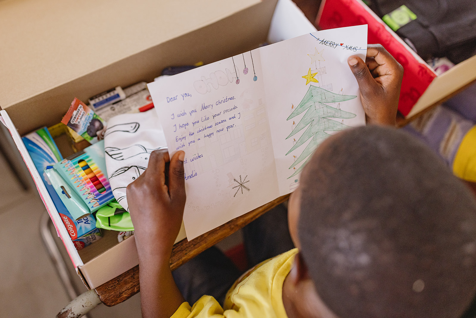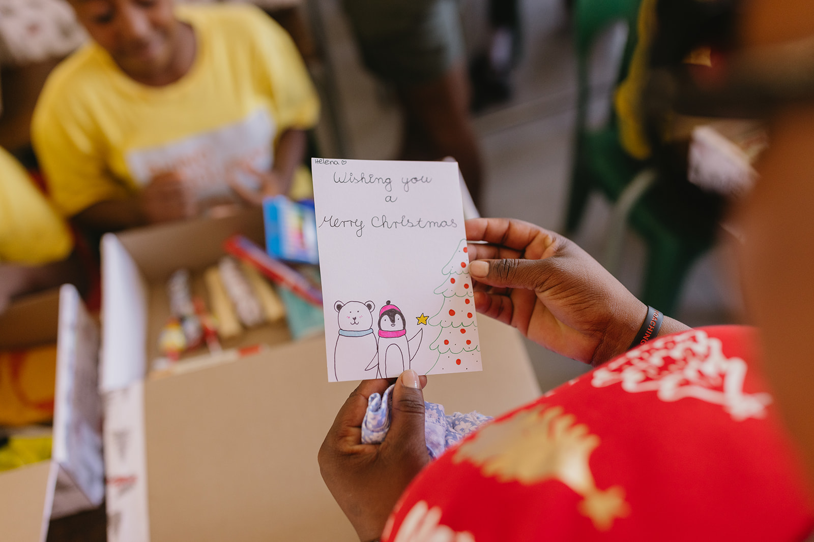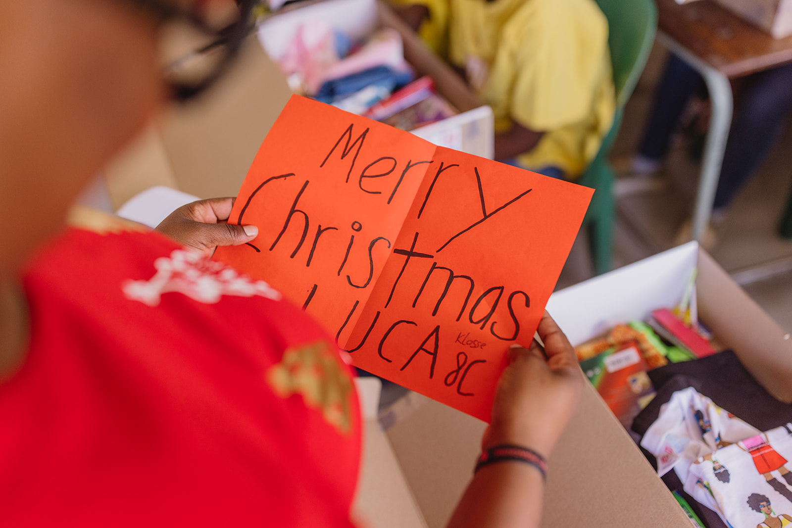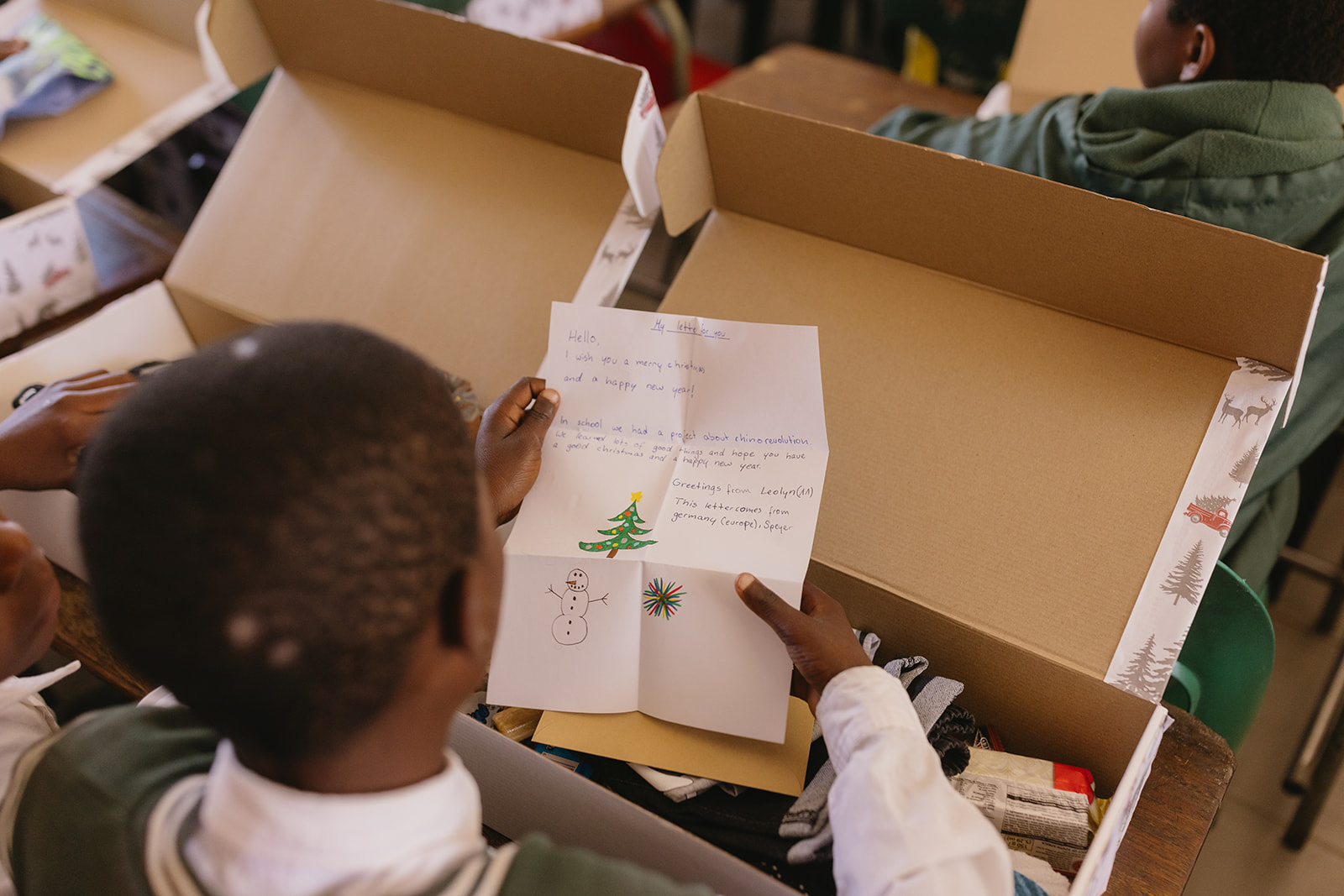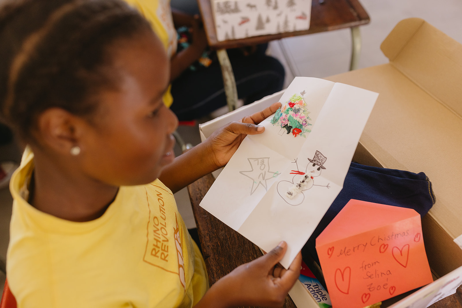 Für viele dieser Kinder ist die Santa Shoebox das einzige Weihnachtsgeschenk, das sie erhalten werden. Die Freude und das Strahlen in ihren Gesichtern war für uns ein unvergesslicher Anblick. Die Boxen wurden liebevoll von unserem Rhino Revolution Team über viele Wochen hinweg von Hand verpackt, beklebt und mit Geschenken gefüllt. Dieses Jahr haben auch zwei deutsche Partnerschulen (Justus-von-Liebig-Realschule plus Maxdorf & Nikolaus-von-Weis-Gymnasium in Speyer) Weihnachtskarten gebastelt und gemalt, sodass die Kinder Post aus Deutschland erhielten – ein besonderer Gruß, der ihre Augen leuchten ließ.