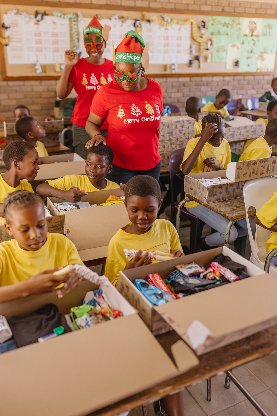 Insgesamt wurden in diesem Jahr 350 Santa Shoeboxes gepackt. Alle Kinder der 5. und 6. Klassen unserer Partnerschule, der Ndabeni Higher Primary School, erhielten eine Santa Shoebox. Zusätzlich wurden 10 Boxen an den Rotary Club Hoedspruit gespendet, der diese an ein Waisenhaus weiterverteilte. Wir freuen uns, dass wir unser Spendenziel erreicht haben und sogar Mittel für das kommende Jahr übrig geblieben sind. Dank großzügiger Spenden und Preisnachlässe beim Einkauf stehen für die Santa Shoebox Aktion 2025 bereits R 79.231,95 (ca. 4.200€) zur Verfügung.
