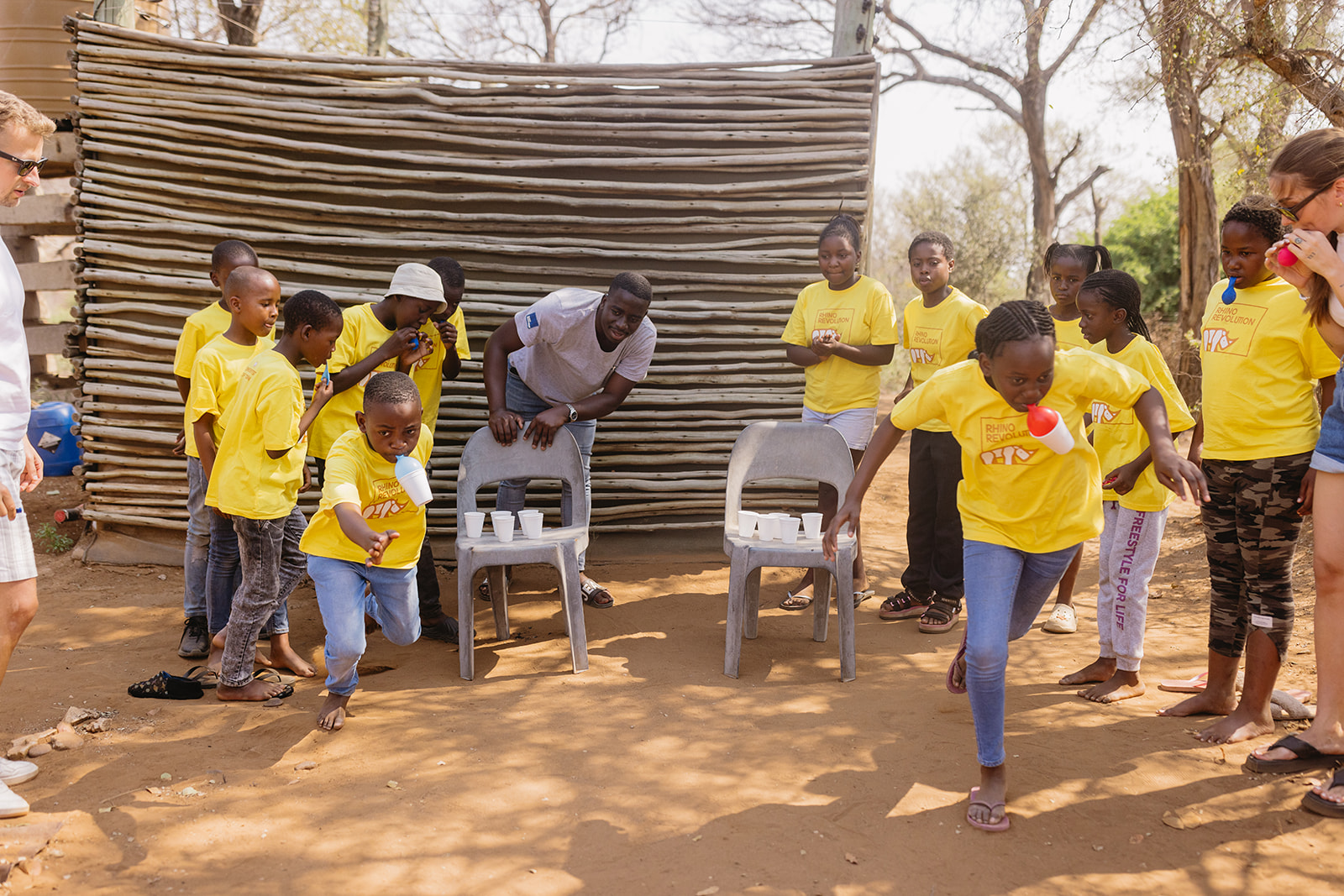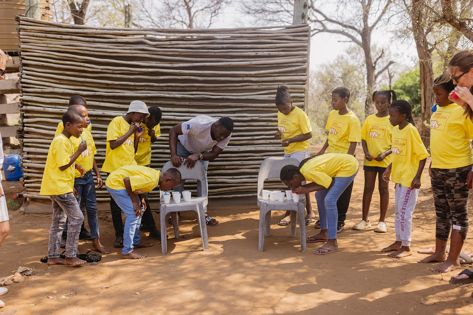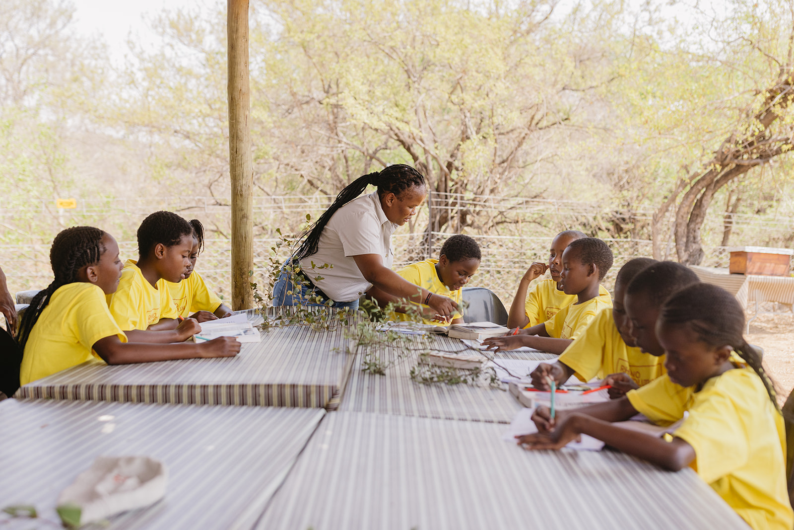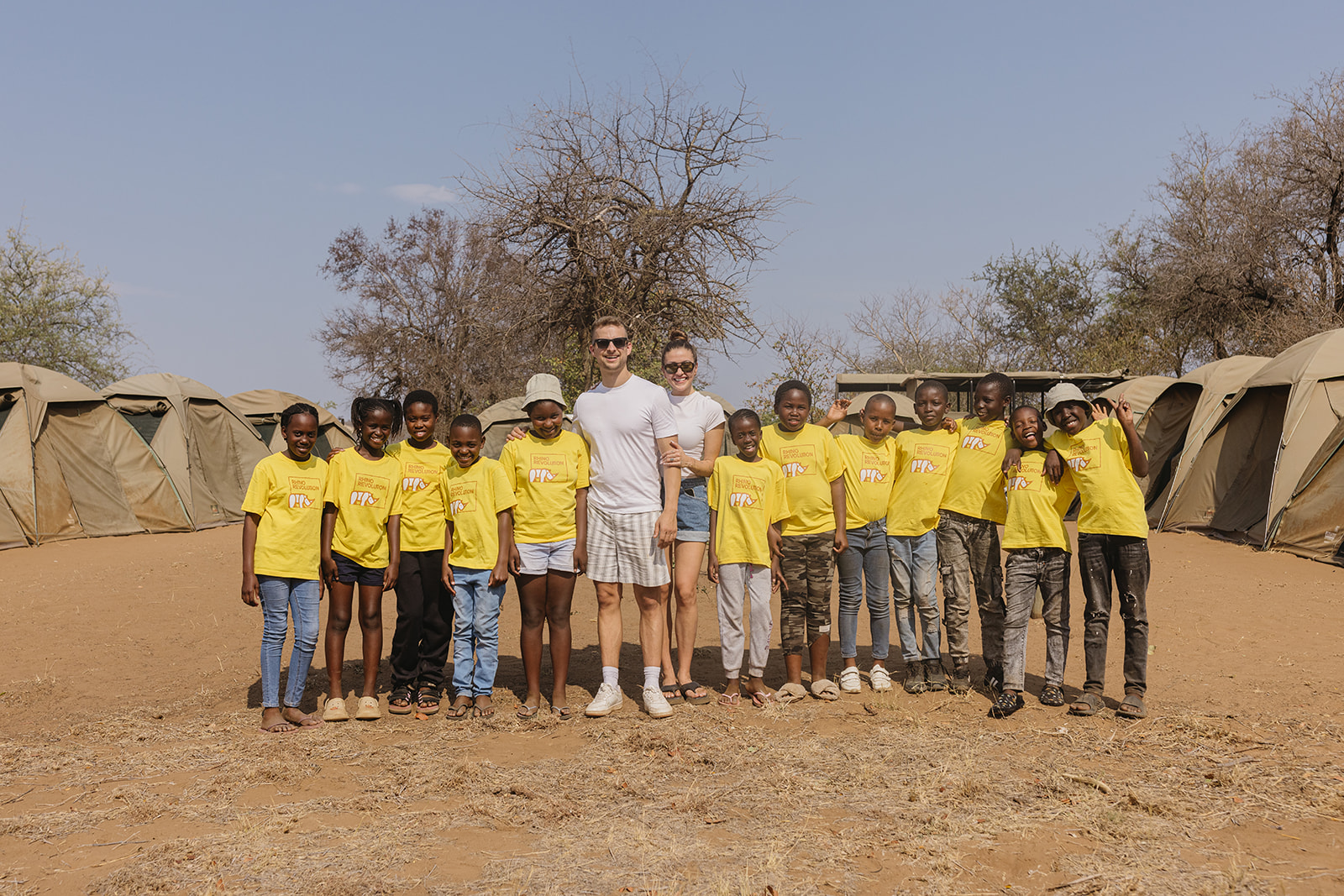 Die Woche im Camp war zudem reich an Wildtiersichtungen. Ein besonderes Highlight war der Besuch eines großen Löwenrudels, das direkt am Camp auftauchte, sodass die Kinder die majestätischen Raubkatzen aus nächster Nähe beobachten konnten. Giraffen, Elefanten und Antilopen begleiteten ebenfalls diese unvergessliche Woche. Der Höhepunkt war jedoch die Sichtung zweier Spitzmaulnashörner – eine absolute Seltenheit und die erste Rhino-Sichtung im Camp seit zwei Jahren. Dieser emotionale Moment hinterließ die Kinder staunend und dankbar.