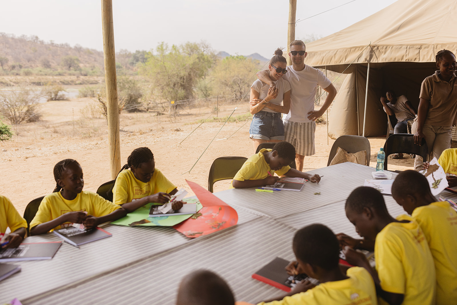 Am letzten Tag erhielten die Kinder Besuch von Geschäftsführer Andreas Nusch sowie Belinda und Johannes Kliesch. Johannes Kliesch, Geschäftsführer von Snocks, hat Rhino Revolution in diesem Jahr großzügig unterstützt und nutzte die Gelegenheit, sich gemeinsam mit Belinda persönlich von der nachhaltigen Arbeit von Rhino Revolution zu überzeugen. Die beiden haben den Kindern Geschenke mitgebracht: Jedes Kind erhielt ein DIN A4-Notizbuch, Kugelschreiber und Bleistifte. Wir bedanken uns herzlich, denn für diese Kinder sind Schulmaterialien keine Selbstverständlichkeit und wurden mit großer Freude entgegengenommen.