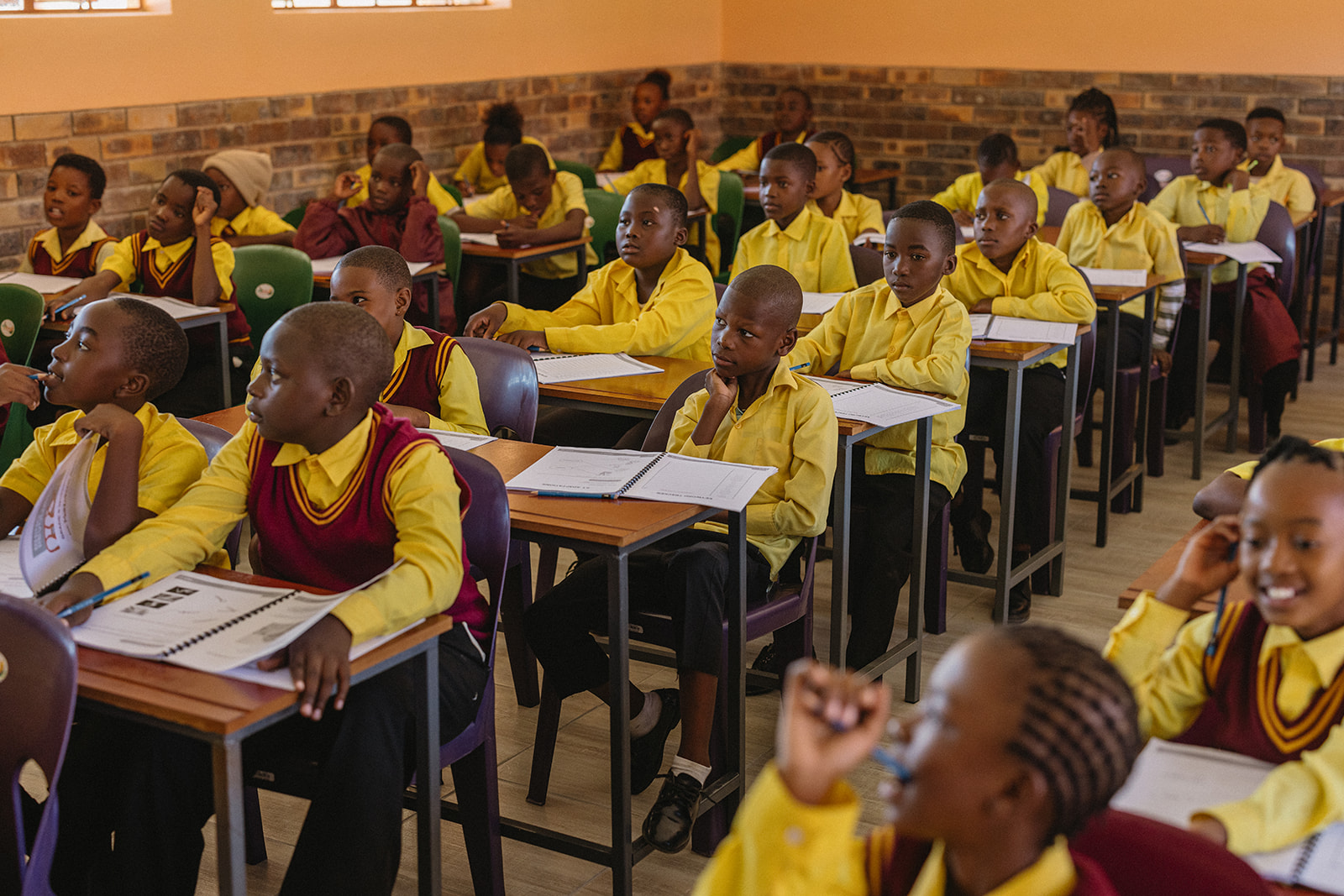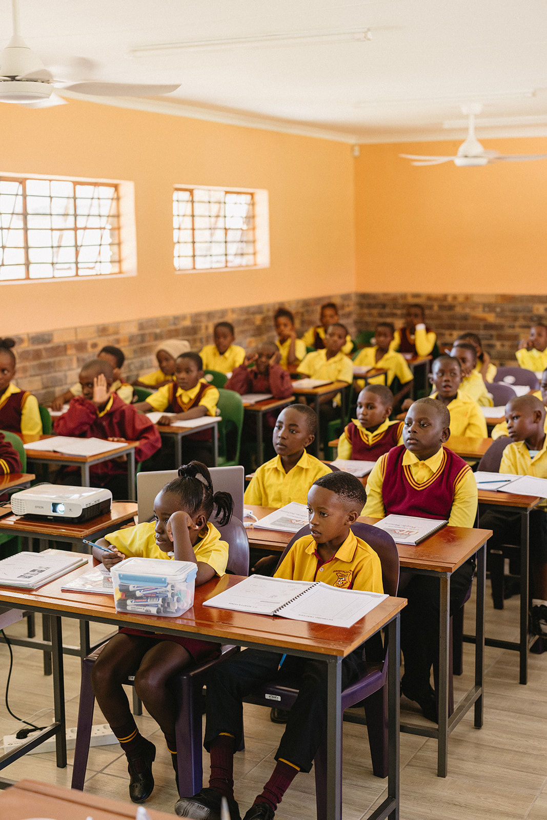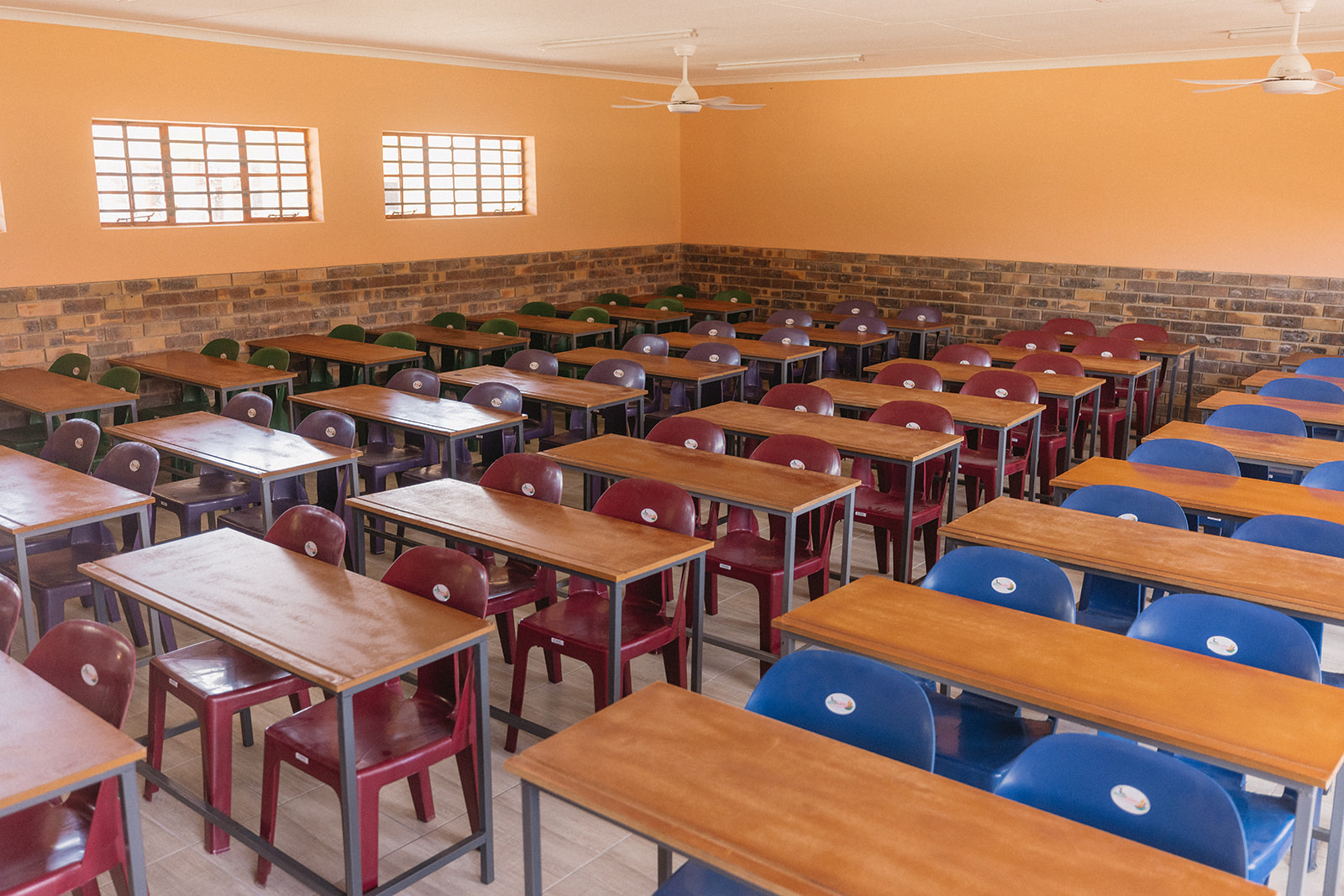 Mit großer Freude wurden die Kinder der Klassen 5A, 5B und 5C im neuen Klassenzimmer empfangen. Allein die beiden Klassen 5A und 5B zählen jeweils über 70 Kinder, die zur gleichen Zeit unterrichtet werden – in der Klasse 5C sind es 63 Kinder. Der neue Raum wurde so gestaltet, dass er dieser Herausforderung gerecht wird: Nicht mehr als zwei Kinder teilen sich einen Tisch, jedes Kind hat einen eigenen Stuhl, und das Lehrpersonal kann sich frei zwischen den Tischen bewegen, um individuell Hilfestellung zu geben.